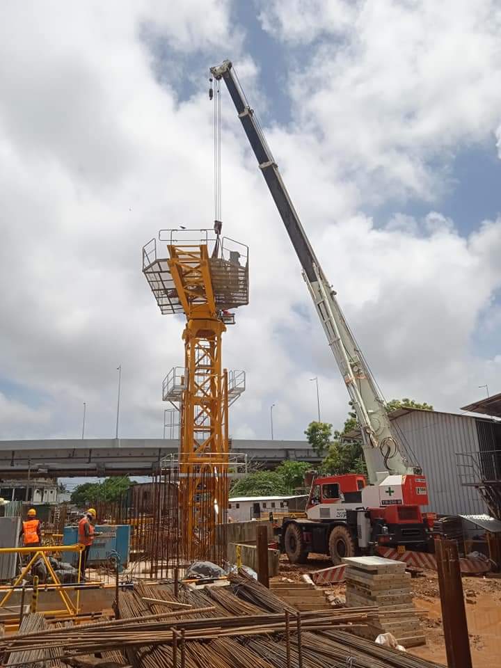 Precision in Motion: High-capacity cranes navigating tight city skylines.